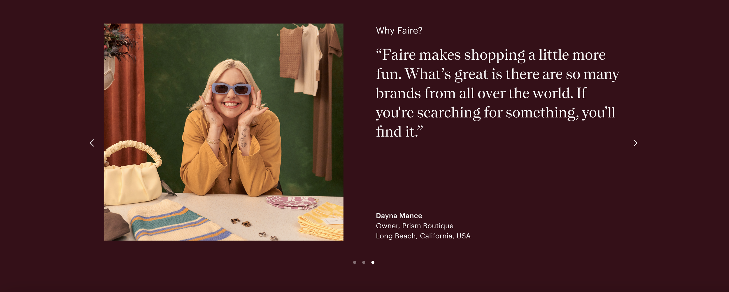 We captured three stories that we wove together into an anthem, and then celebrated each retailer in standalone films that lived in the Faire product and promoted through a social campaign. I wrote the landing page copy, and directed the photo shoot.
